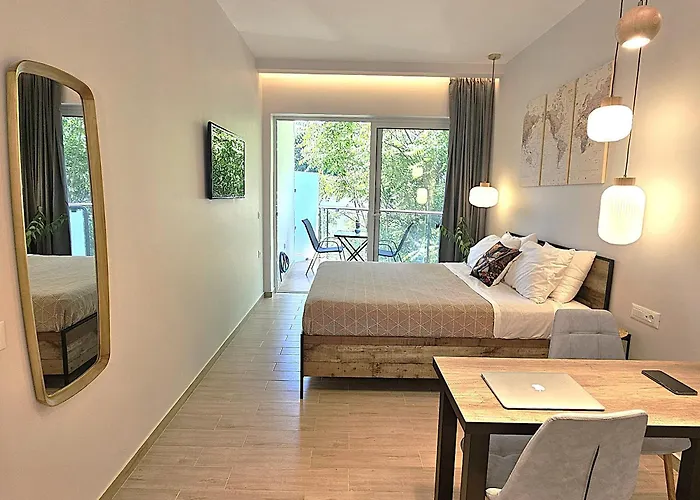 Diese Unterkünfte verfügt über eine komplette Küche mit einer Kaffee-/Teemaschine, einem Kühlschrank und Küchenutensilien. Die Unterkünfte ist in ca. 5 Gehminuten Entfernung von der nächstgelegenen Bushaltestelle Diagoras of Rhodes.